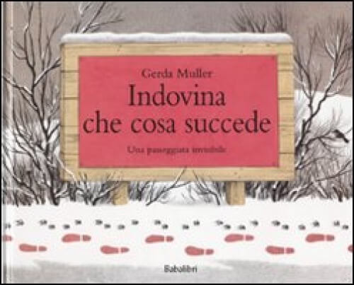 Indovina cosa succede, di Gerda Muller, Babalibri: Questo libro si presta a stimolare nel bambino anche la capacità di osservazione perchè racchiude un giochino divertente che sta nello scoprire di quale animale è l’impronta sulla “finta sabbia”.